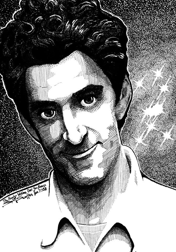The latest portrait to come off my drawing table is titled The Hunter Watches Over You Always. It is the portrait of the father of a friend whose father died when she was nine. She is one of several people I’ve known who have expressed a connection or affecton for the constellation Orion. I’ve always liked Orion; it’s about the easiest constellation to find in the Northern Hemisphere. But it wasn’t until hearing a number of dear friends tell me of their feeling for it that I started to regard Orion as a guardian. Of course, I don’t believe that an arrangement of stars in the sky interferes in our lives to protect or harm, but when I look up and see Orion there, I think of these people and tell Orion to keep careful watch. I don’t believe anyone has ever told me of a sense of connection to any other constellation unless it was their zodiac sign, and those who have expressed this connection to Orion are some of my favorite people.