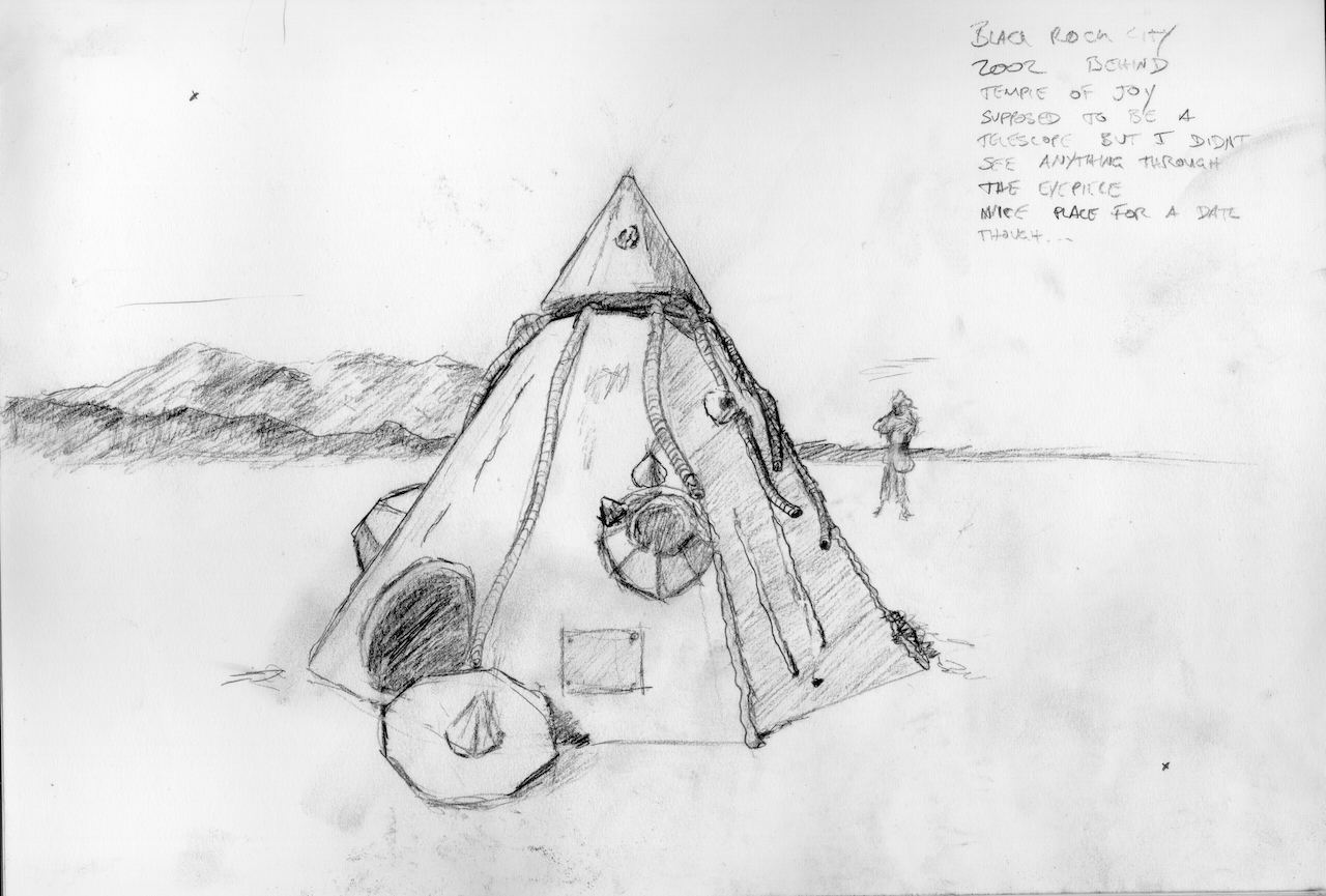 Well, there’s more history to that photo, which is why I’m getting all wistful. About a year ago at Burning Man on the day of the burn, I took off on my bike to go do some sketching in my sketchbook and take some photographs. I zipped and zoomed and sat out in the sun drawing. Here: