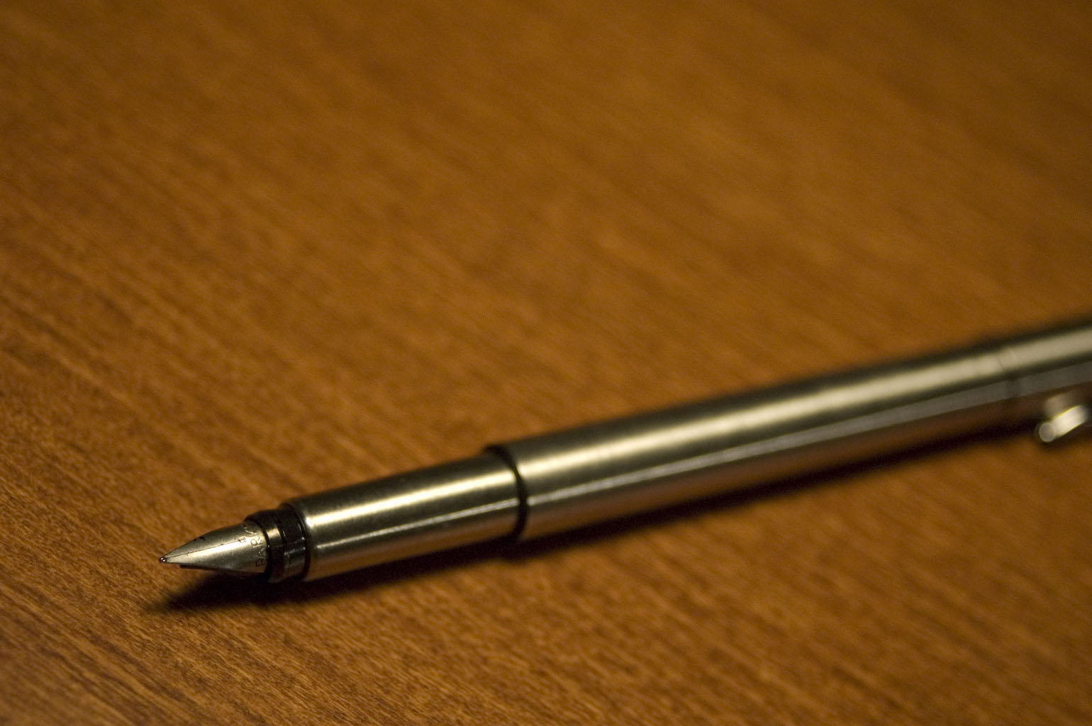 Having used other pens with real heft to them, coming back to the Parker was a little disappointing. Even in stainless steel it’s quite a bit lighter than the other pens I use. I just put it on a food scale and it comes in at 17 grams filled. The Rotring 700 is 28 grams and the Initial 47. For comparison I weighed a Pilot Varsity disposable fountain pen (which is a surprisingly good pen! if you’re looking for a starter fountain pen get a Varsity instead of to those damnable Shaeffers. The only problem is you don’t get the fun and experience of refilling) and it was 9 grams.