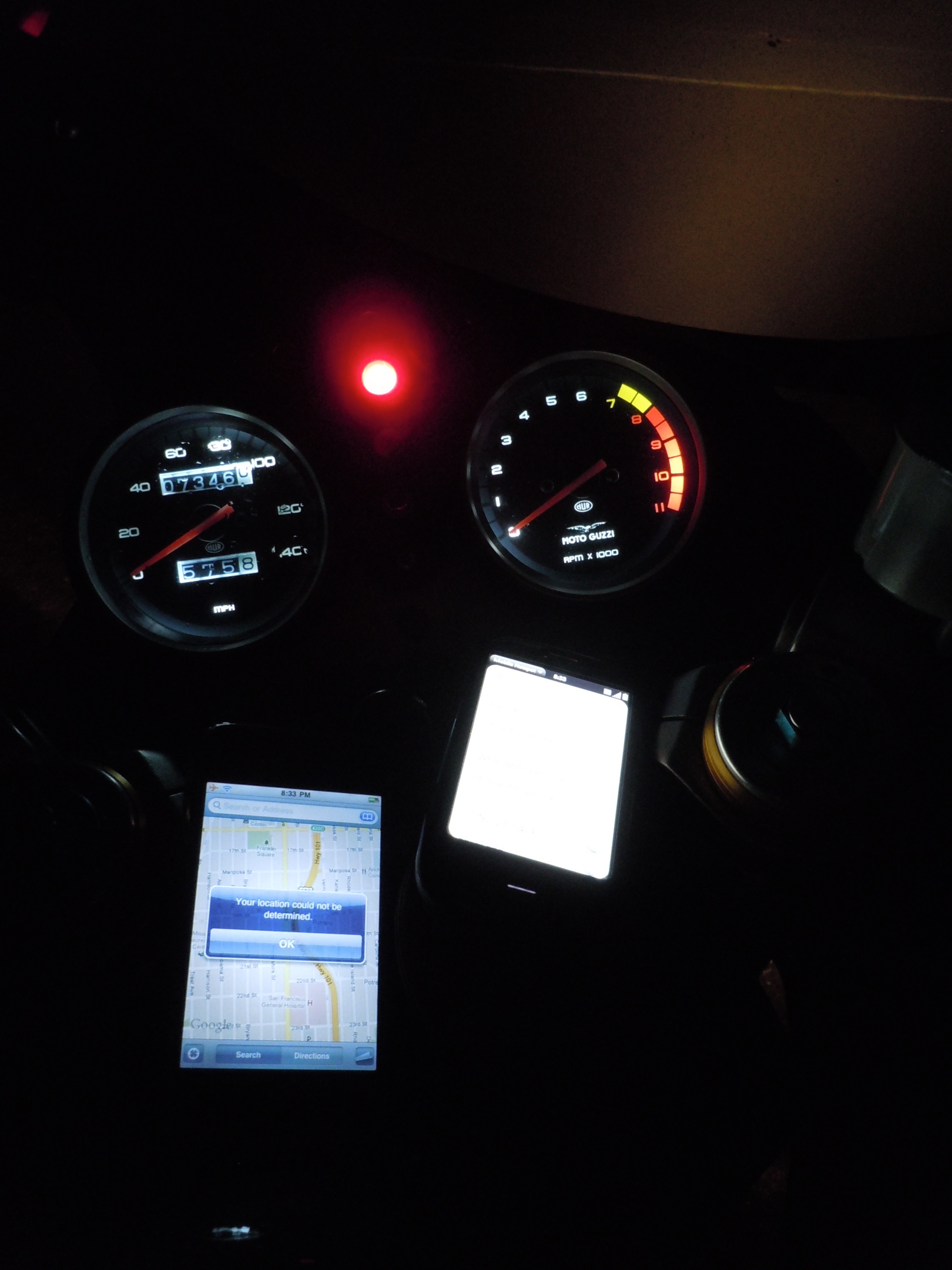 The next best opportunity was to leave San Francisco in search of less-developed land. There one could find a spot far enough away from any house or business that the absence of a nearby WiFi signal would be likely. It took a ride down to the junction of Routes 35 and 92 to find such a place. There I pulled the motorcycle off the road far enough that I thought it likely I’d be safe there even in the dark and fog, and proceeded to fiddle with gadgets.
