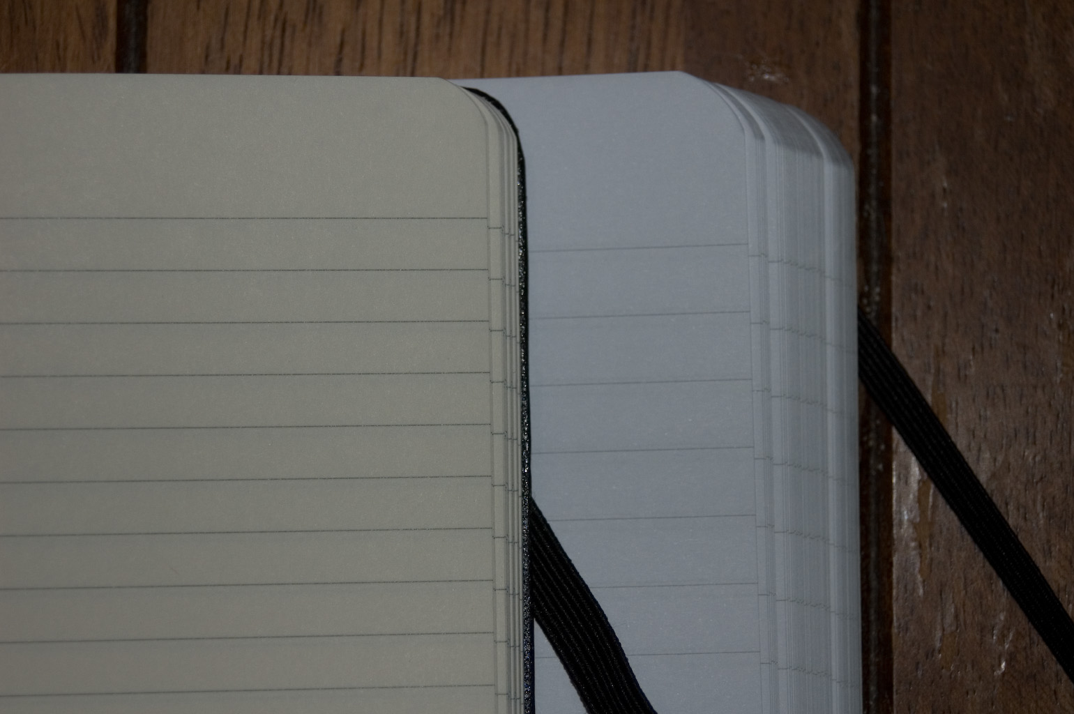 I think the design is spot-on. The paper is a pleasing off-white color, not quite as yellow as a legal pad, with grey rules. I prefer a brighter white for a sketchbook, but this is very nice for a journal or a composition book. In comparison to every other notebook I’ve put my hands on recently, the Moleskines are ruled very close. It’s wonderful for the truly fine point of my Parker ’51â or for a modern extra-fine; I don’t think anyone could write with a medium or broad nib in a ruled Moleskine.