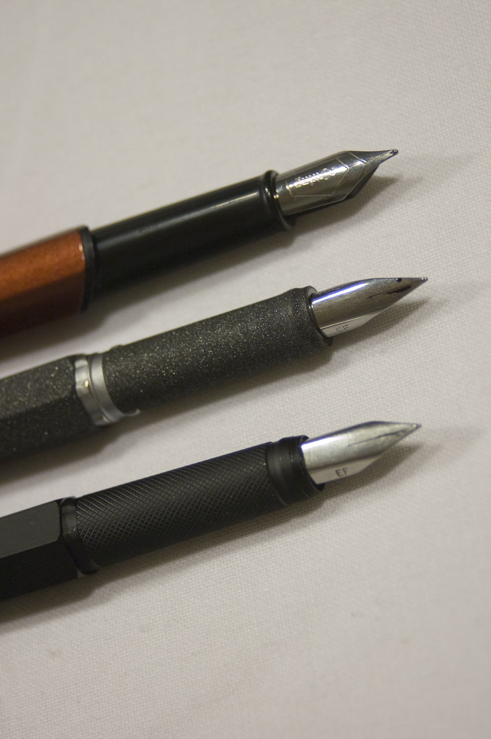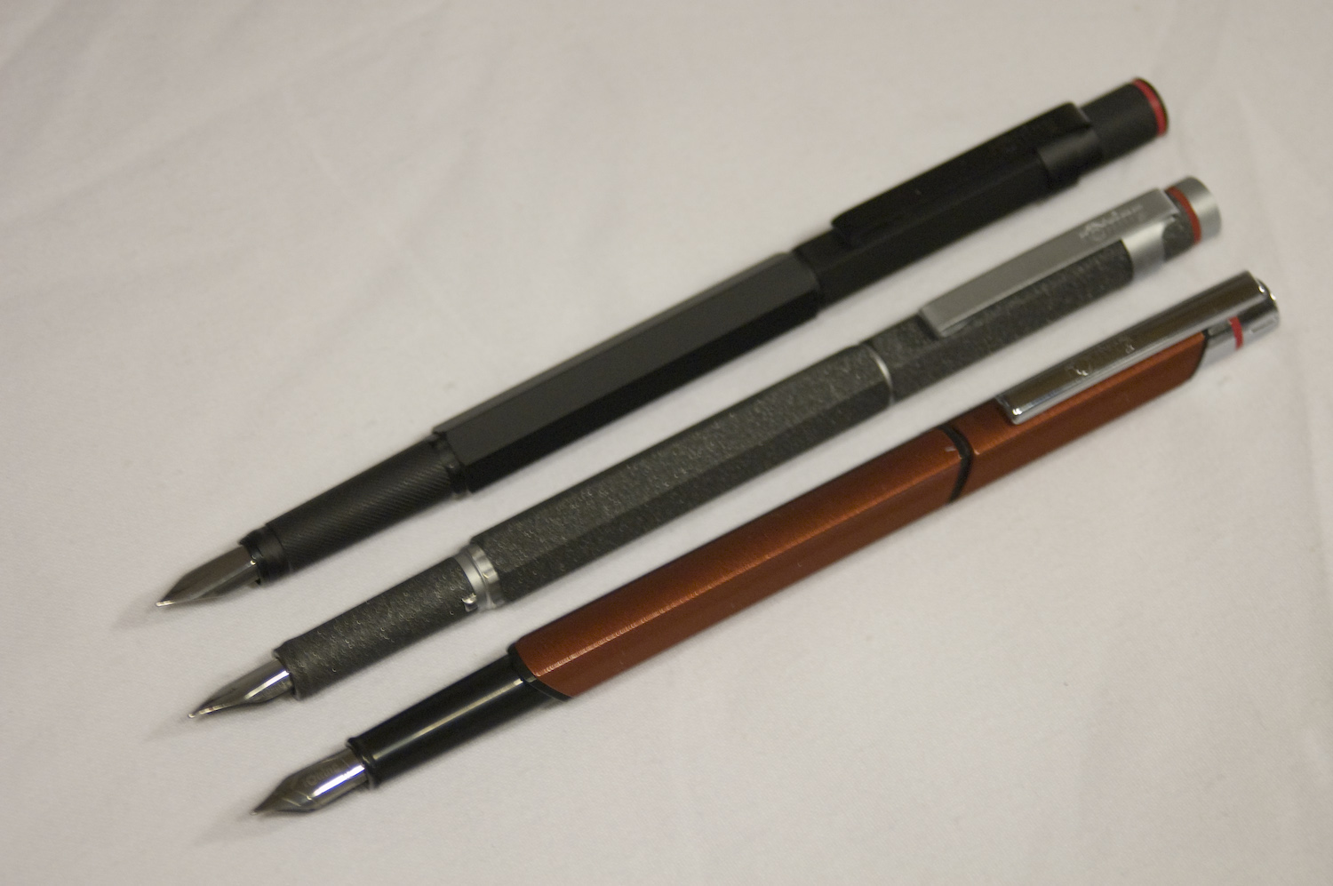 The Newton was made available in black and in silver, but along with the angled redesign Rotring replaced the lava option with a handsome metallic brown they call copper. Though the finish is finely speckled like its predecessor in lava, the similarity stops at the appearance. The barrel of the copper Newton is as smooth as the black or silver varieties, no substitute for the superfine-grit feel of the lava 600.