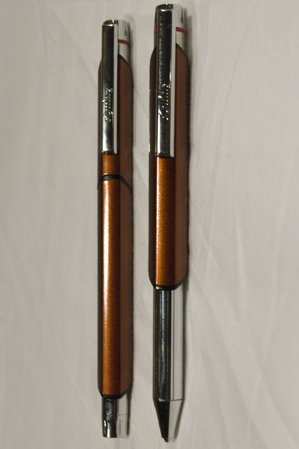 It’s a clever gimmick, but I wonder whether it serves a practical purpose or if Rotring was indulging in a bit of showing off. The design is much more complex and therefore is likely to be more prone to failure. Perhaps quality materials offset this potential, but psychologically the damage is done. I keep my Newton, along with matching mechanical pencil, in a protective leather pouch. My older 600s appear simple and indestructible and therefore sometimes find themselves in a pocket as I head out the door. The Newton may be as durable as its predecessors, but it doesn’t feel that way. It feels solid, but not the way the 600s do.