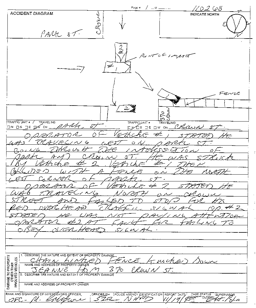 Below is the accident diagram from the police report taken by the investigating officer on the scene.