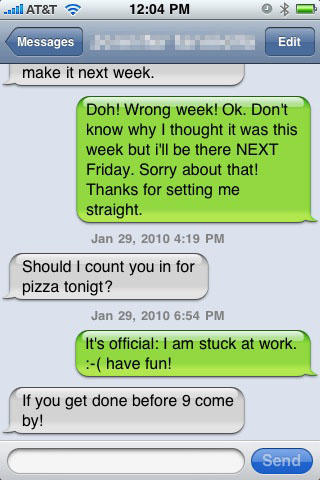 One would think that a phone with a built-in keyboard is just built for text messaging. Here too it seems that Nokia was focusing more on getting the features out the door than with actually creating something that would be useful to someone. Creating a text message has the same difficulties that creating an email would, and worse. The list of incoming text messages is purely sequential, with no threaded view and no way to search for messages from a particular recipient. You can laugh all you like at iPhone’s cartoon word-balloon display of text messages, but messages are seen there as a conversation, not like a pile of random post-it notes on your desk. It’s possible to look at the history of messages sent to and from your device.