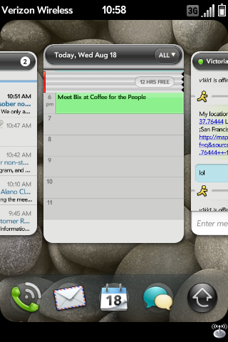 As a result, going back to the iPhone and its hardware home button seems crude and awkward. It’s a small touch and shouldn’t be a deal-breaker for anyone, but I have to credit Palm with creating a system that immerses the user more deeply in the language of gestures.